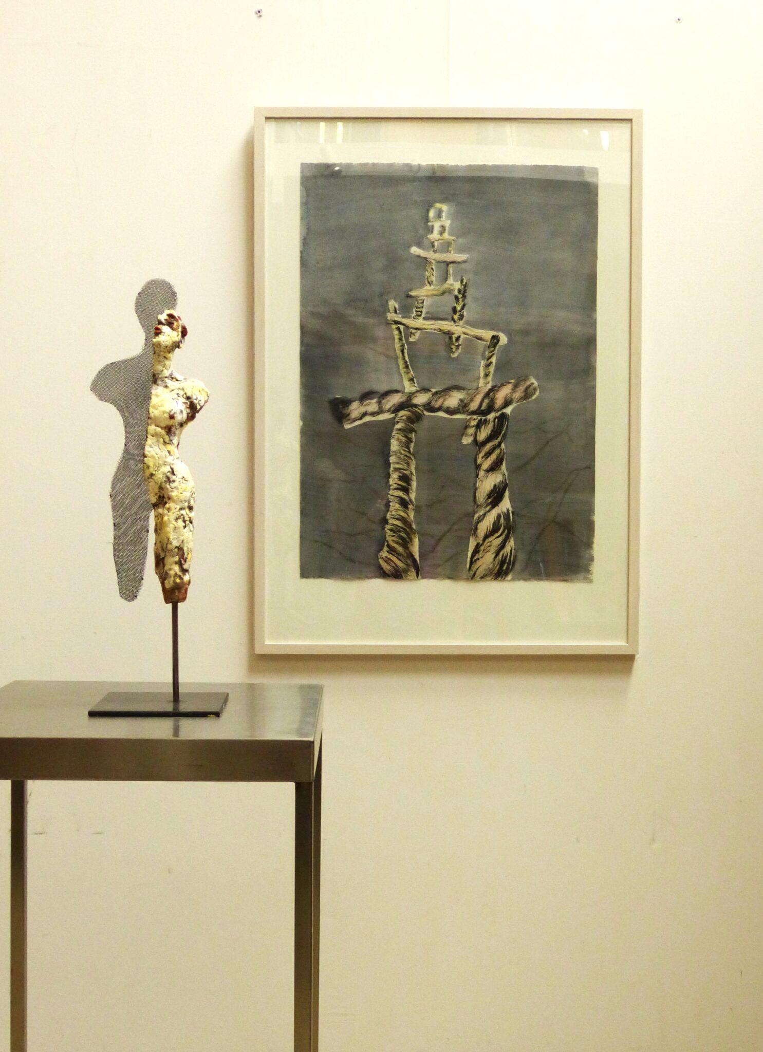 que m’avait inspirée un poème de Monique Laederach découvert par hasard (mais y a-t-il un hasard ?) : « robes toujours trop grandes et trop pesantes et finalement se déchirant à chaque fois qu’ils avaient réclamé que j’ose »
