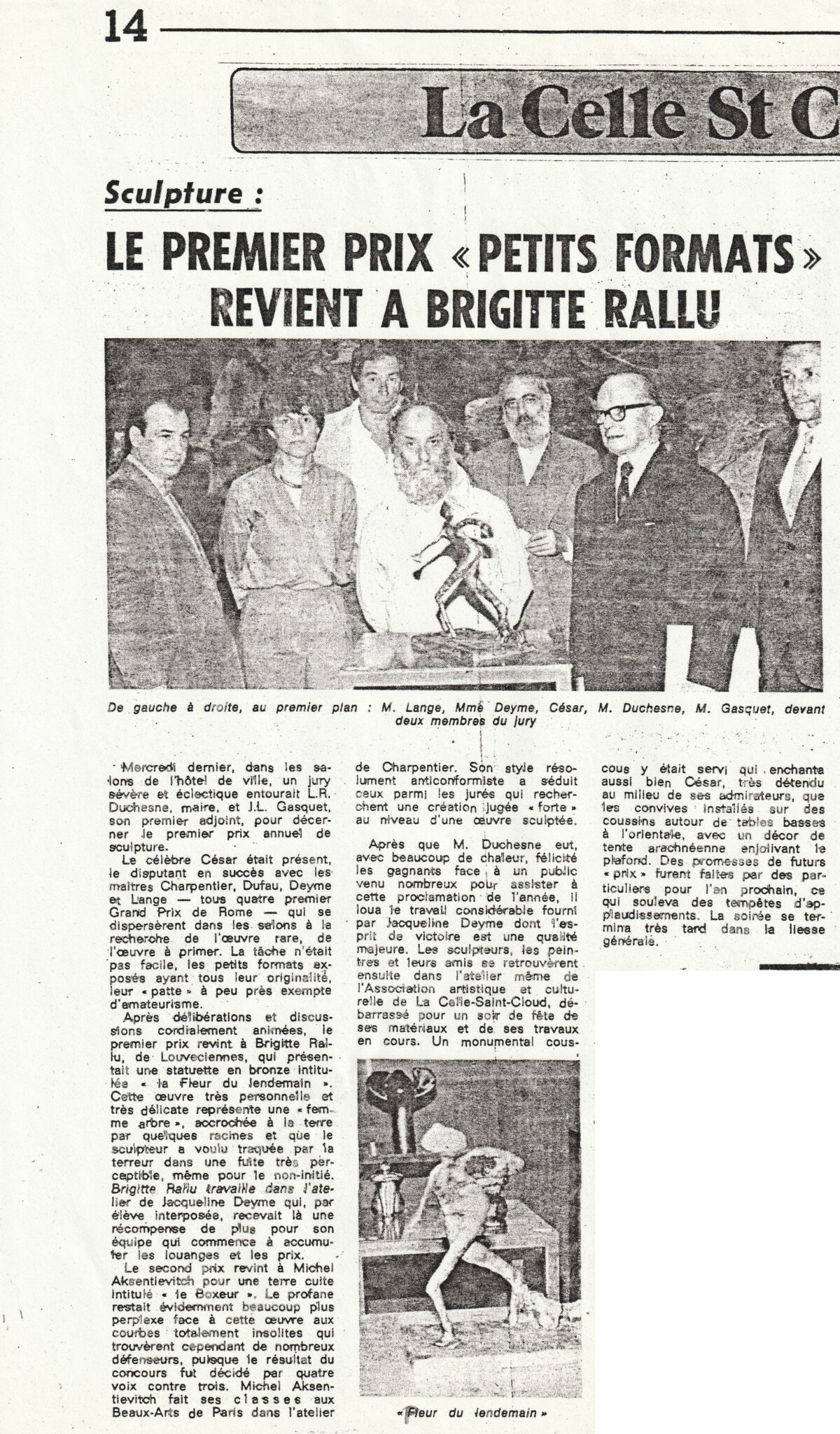 1980 . Prix de sculpture de la ville de La Celle Saint Cloud, (président du jury: César)
