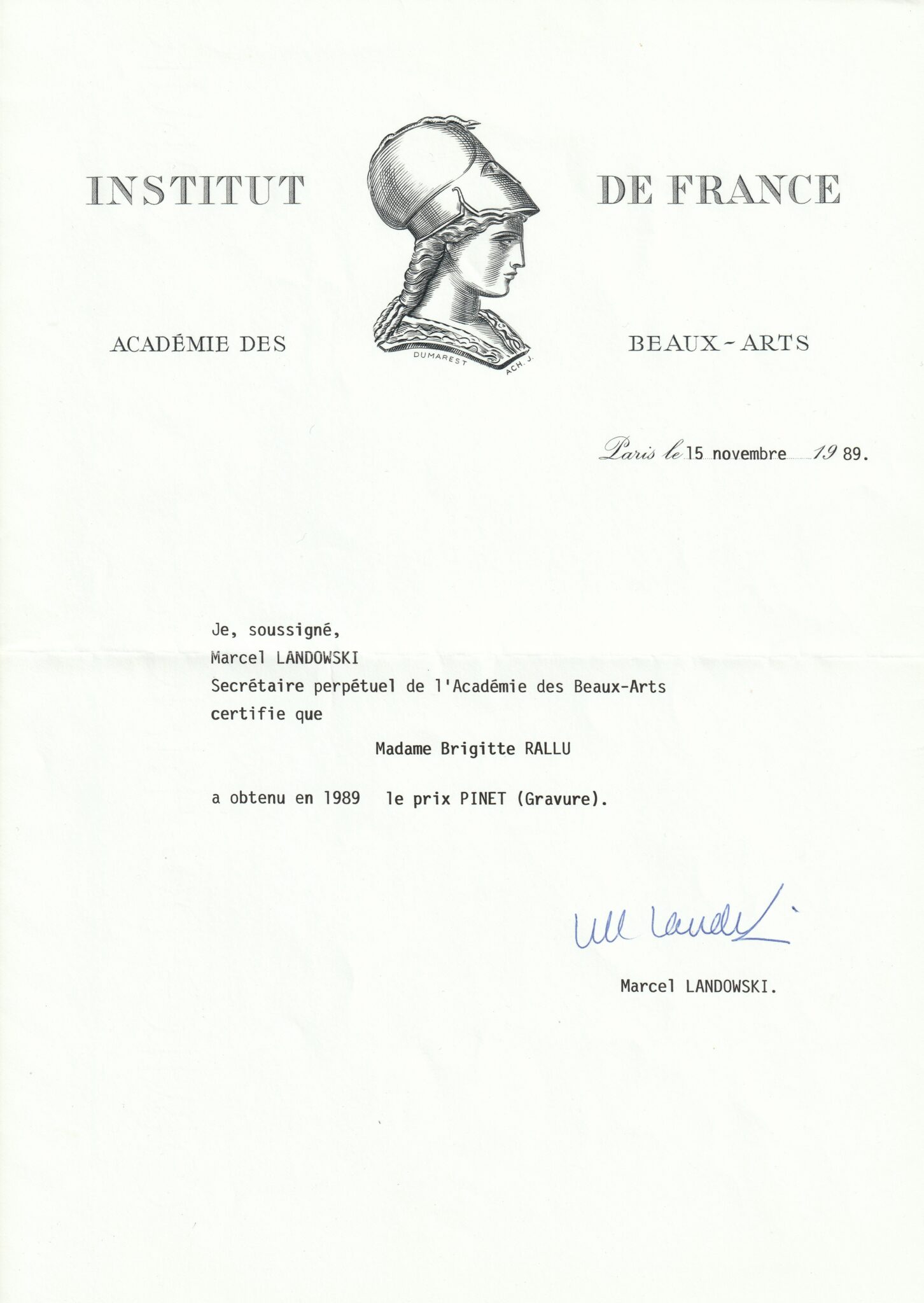 1989 . Prix Pinet de l’Institut de France (Académie des Beaux Arts).